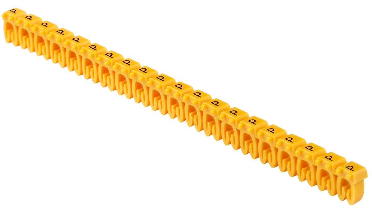 Описание Маркер кабельный открытого профиля типа KE предназначен для цифровой и цветовой маркировки проводов и кабелей сечением 0,75-1,5 мм2. Изготовлен из эластичного материала, позволяющего произвести надежную и быструю фиксацию на проводниках.