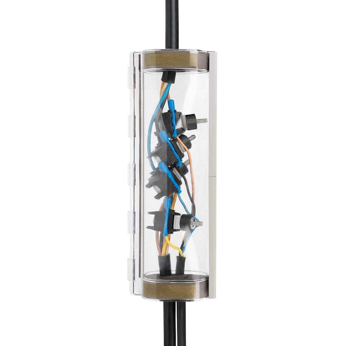 Комплектация Состав муфты: двухкомпонентный быстрозастывающий полиуретановый компаунд|зажимы прокалывающие ответвительные ЗПО|пластиковый прозрачный корпус|герметизирующие вставки| изолента ПВХ|перчатки монтажника