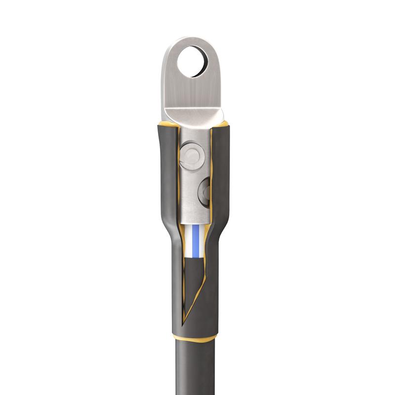 Описание Предназначены для герметичного оконцевания кабелей и проводов - с пластмассовой изоляцией (ПВХ/СПЭ, на напряжение до 1 кВ. Комплект состоит из болтового наконечника с рядным расположением болтов и термоусаживаемой манжеты с клеевым слоем. Каждый комплект является мультиразмерным и рассчитан на расширенный диапазон сечений кабеля. Крепление на жиле осуществляется методом завинчивания болтов со срывной головкой. Болтовые головки срываются при достижении установленного момента, обеспечивающего оптимальные механические и электрические свойства контактного соединения. Термоусаживаемые трубки с клеевым слоем и с коэффициентом усадки до 4 -1 обеспечивают полную герметизацию и изоляцию соединений. Эксцентриковое отверстие под кабельную жилу в корпусе наконечника. Термоусаживаемая манжета устойчива к ультрафиолетовому излучению и погодным погодно-климатическим условиям. При усадке клеевой слой расплавляется, заполняет все неровности микрорельефа и обеспечивает полную герметичность соединений.