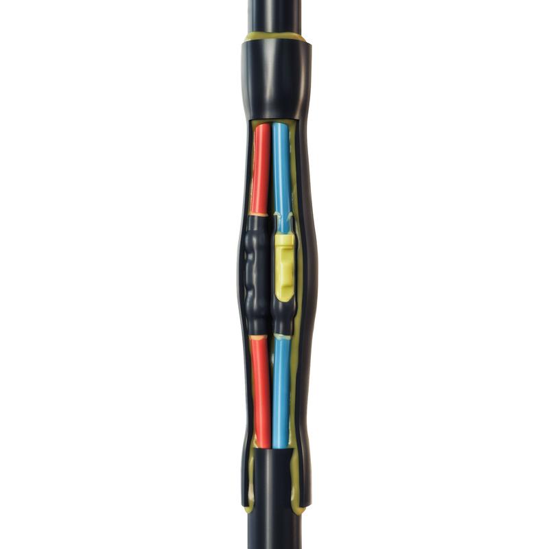 Описание Предназначены для соединения медных водопогруженных кабелей - с пластмассовой изоляцией. на напряжение до 400 В. Соответствует требованиям ГОСТ 13781.0-86. Типы монтируемых кабелей - КВВ, КВПВ и др. Комплекты универсальны и могут быть использованы на 3—4-х жильном водопогруженном кабеле в диапазоне сечений от 1,5 до 6,0 мм. Муфта имеет два контура герметичности, представленных клеевыми термоусаживаемыми трубками для изоляции контактных соединений и общей трубкой восстановления оболочки кабеля. Термоусадочные трубки с внутренним слоем термоплавкого клея обеспечивают качественную изоляцию и герметичность соединений. Трубки восстановления оболочки кабеля устойчивы к ультрафиолетовому излучению и погодным условиям. Все полимерные композиции, не содержат галогенов.