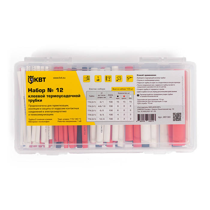 Полные технические характеристики Набор термоусадочных трубок №12 КВТ 85193