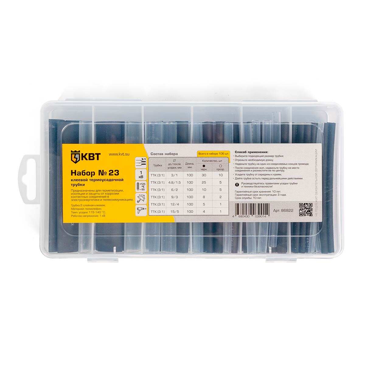 Полные технические характеристики Набор термоусадочных трубок №23 КВТ 86822