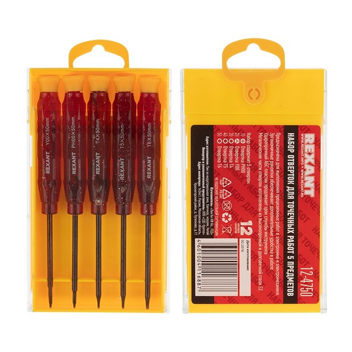 Полные технические характеристики Набор отверток для точечных работ 5 предметов, REXANT REXANT 12-4750