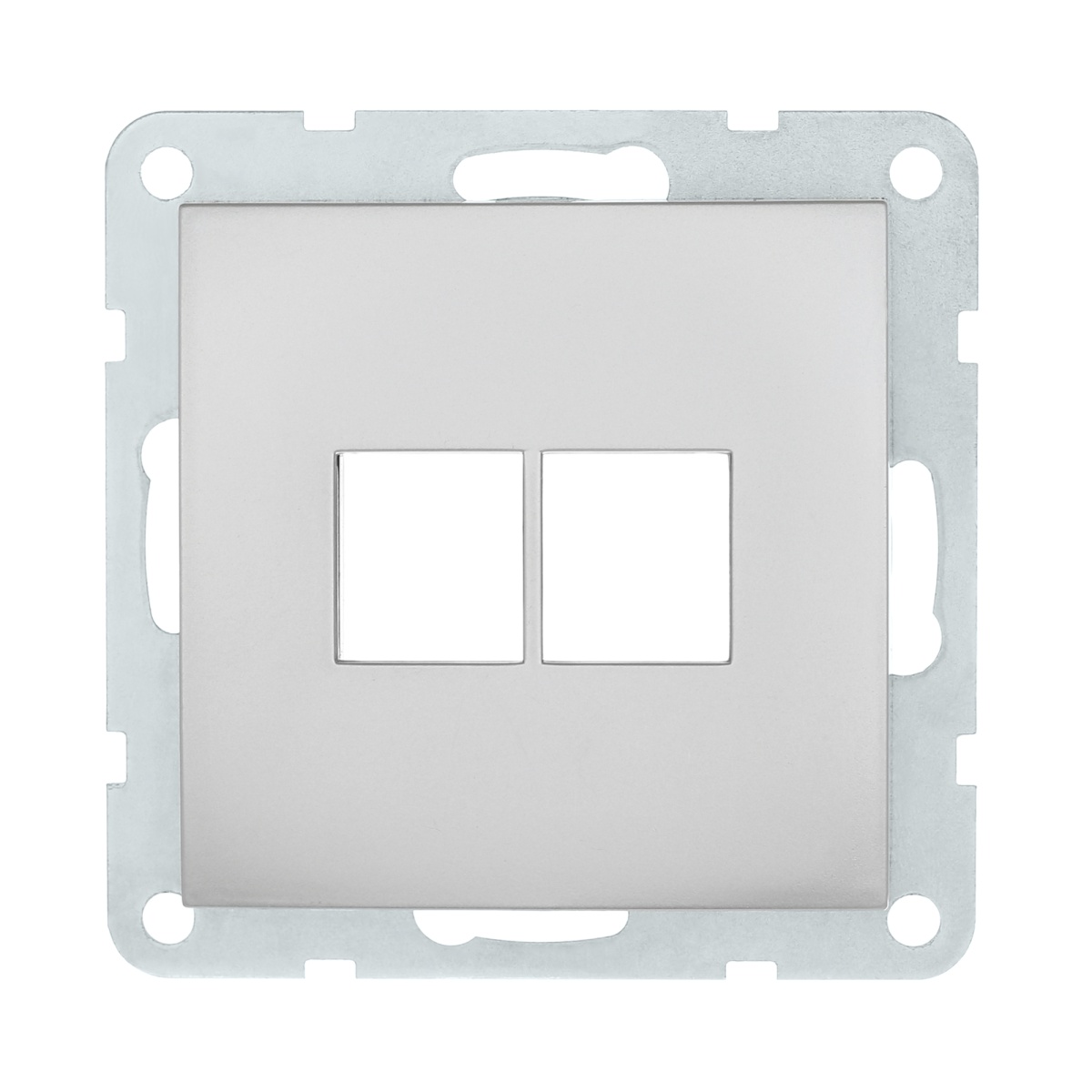 Накладка с суппортом розетки компьютерной и телефонной на 2 входа (серебристый металлик) БЕЗ механизма LK60 Ecoplast 866203-0