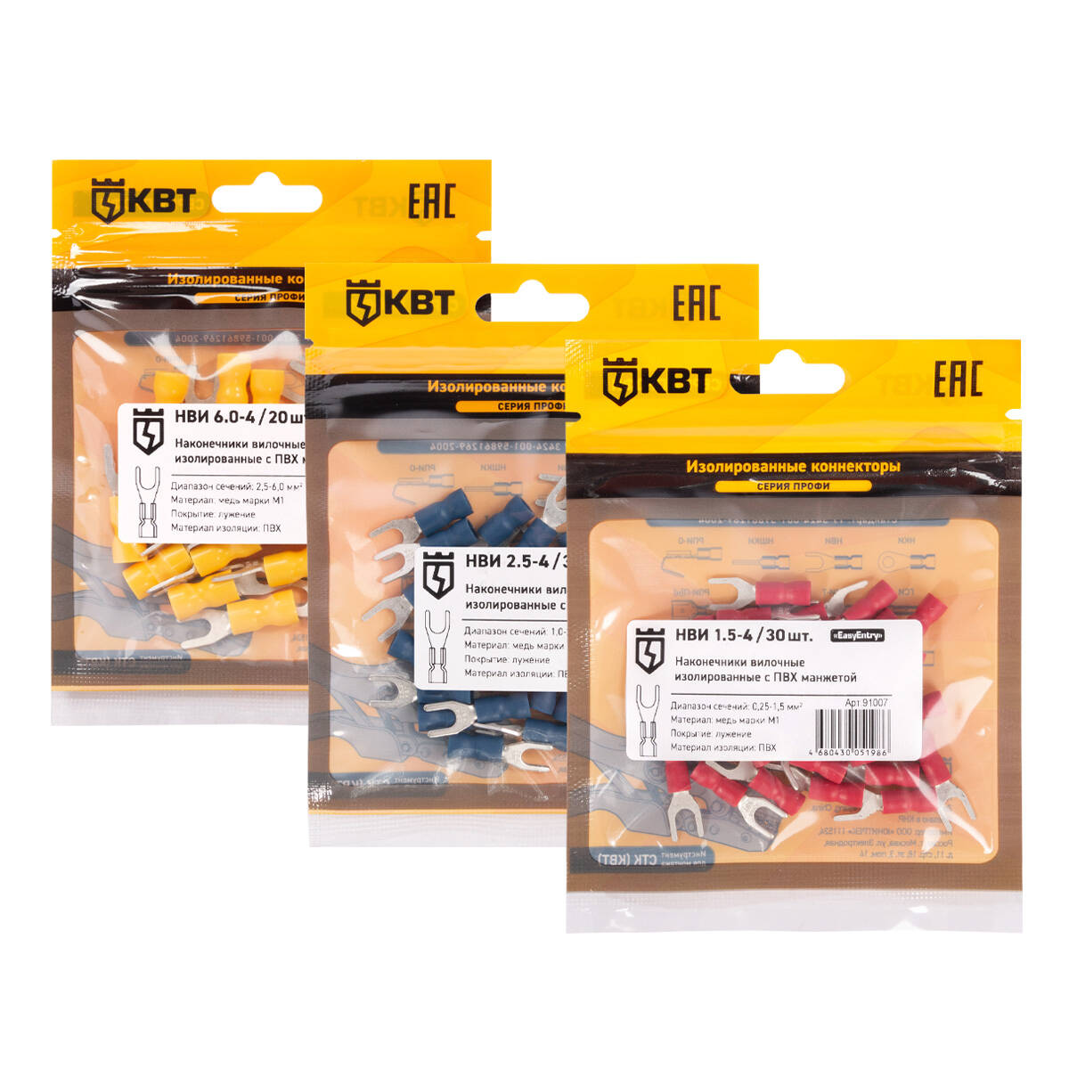 Наконечник кабельный вилочный изолированный НВИ 1.5–4 (30 шт) (КВТ)