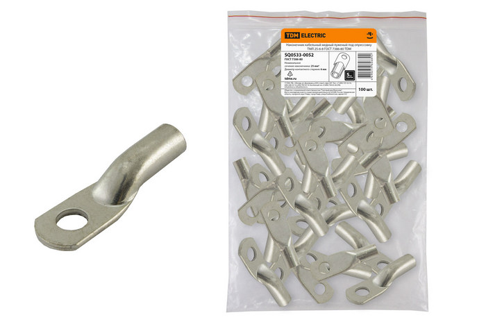 Полные технические характеристики Наконечник медный луженый ТМЛ 25-6-8 ГОСТ 7386-80 TDM TDM ELECTRIC SQ0533-0052
