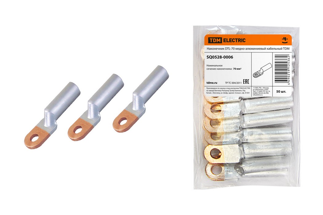 Полные технические характеристики Наконечник DTL-70 медно-алюминиевый кабельный TDM ELECTRIC SQ0528-0006