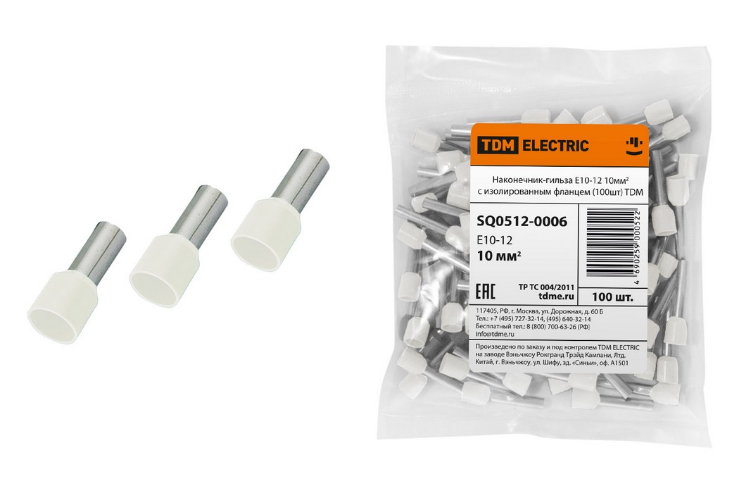 Полные технические характеристики Наконечник-гильза Е10-12 10мм2 с изолированным фланцем (100шт) TDM ELECTRIC SQ0512-0006