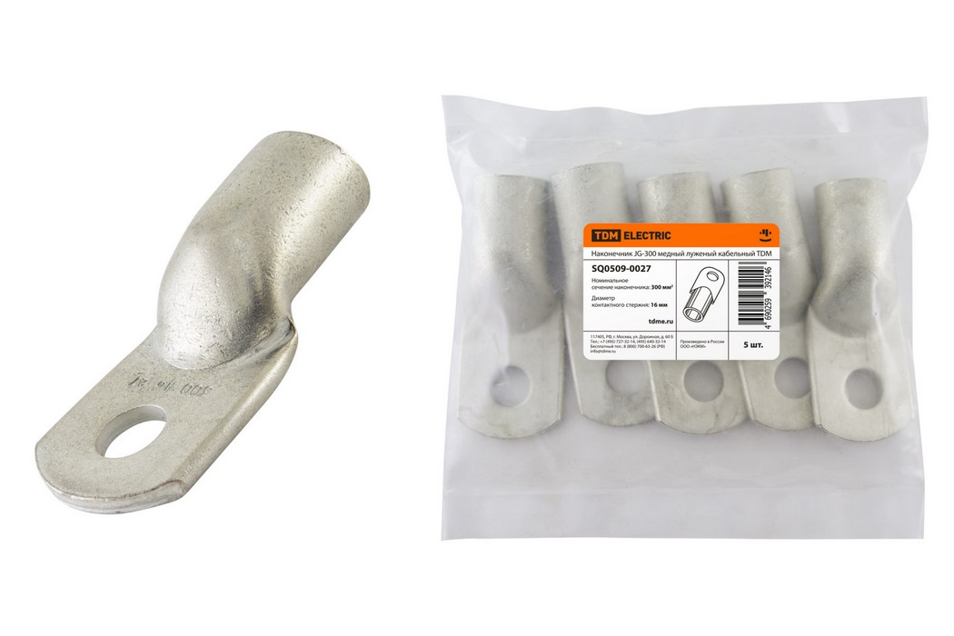 Полные технические характеристики Наконечник JG-300 медный луженый кабельный TDM ELECTRIC SQ0509-0027