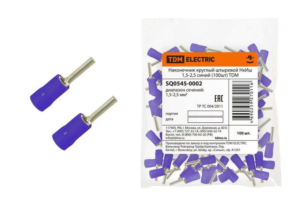 Полные технические характеристики Наконечник круглый штыревой НкИш 1,5-2,5 синий (100шт) TDM ELECTRIC SQ0545-0002
