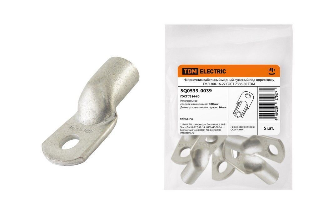 Наконечник кабельный медный луженый под опрессовку ТМЛ 300-16-27 ГОСТ 7386-80 TDM ELECTRIC SQ0533-0039