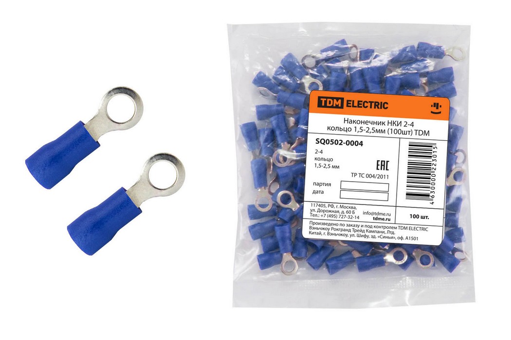 Полные технические характеристики Наконечник НКИ 2-4 кольцо 1,5-2,5мм (100шт) TDM ELECTRIC SQ0502-0004
