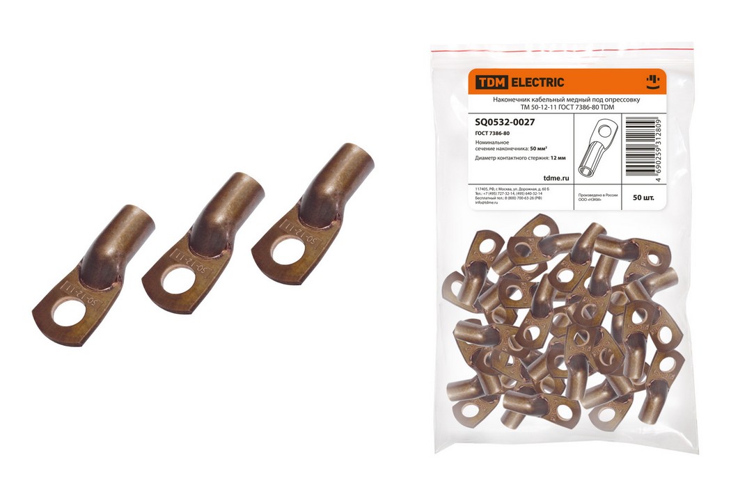 Наконечник кабельный медный под опрессовку ТМ 50-12-11 ГОСТ 7386-80 TDM ELECTRIC SQ0532-0027