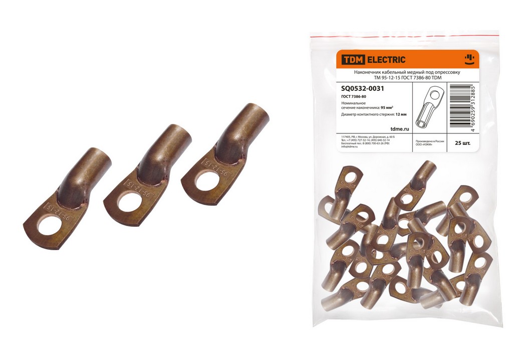 Наконечник кабельный медный под опрессовку ТМ 95-12-15 ГОСТ 7386-80 TDM ELECTRIC SQ0532-0031