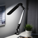 Описание Настольный светильник ЭРА NLED-496-12W-BK со светодиодами (LED) в качестве источников света. Оснащен сенсорным управлением с возможностью выбора цветовой температуры (теплый, нейтральный или холодный свет). Плавный диммер для регулировки яркости. Светильник сохраняет выбранные настройки при включении-выключении. Высота плафона регулируется двухсекционной сгибающейся стойкой, направление света регулируется поворотом и наклоном плафона в любую сторону. Удобное крепление на струбцину.