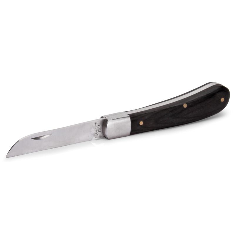 Описание Компактный складной инструмент, который предназначен для снятия изоляции и зачистки жил от окисной пленки. Лезвие изготовлено из нержавеющей стали. Рукоятка - термомодифицированная древесина.
