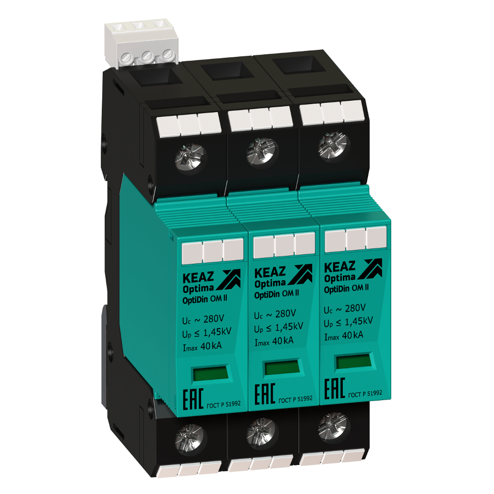 Ограничитель импульсных перенапряжений (УЗИП) 3П 40кА (класс II + III) OptiDin OM-II-3-280/40/RS КЭАЗ 114308
