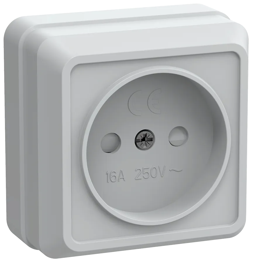 Наименование в каталоге ОКТАВА Розетка без заземления сошторками наружная 10А белый