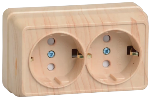ОКТАВА Розетка двойная наружная с заземлением со шторками сосна 16А IEK (ИЭК) ERO24-K03-16-DC
