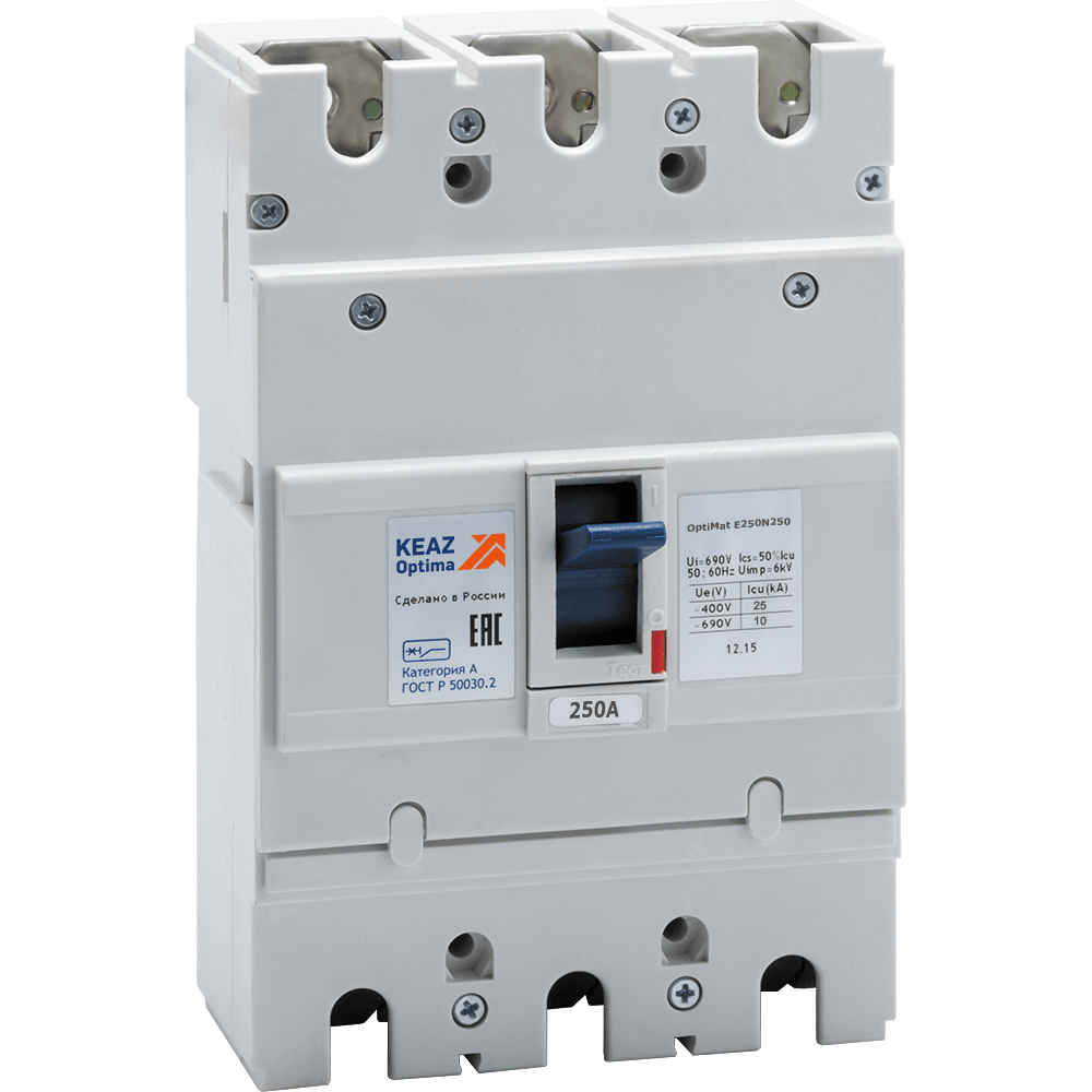 Полные технические характеристики Выключатель автоматический OptiMat E250L250-ОМ4-РЕГ КЭАЗ 273919