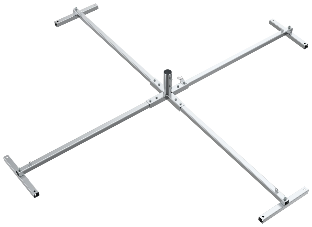 Описание Основание предназначено для установки молниеприёмных мачт высотой до 12 метров. Крепление представляет собой треногу, которая устанавливается непосредственно на бетонное основание 400x400x50 (количество бетонных оснований зависит от высоты конструкции и поставляются отдельно).
