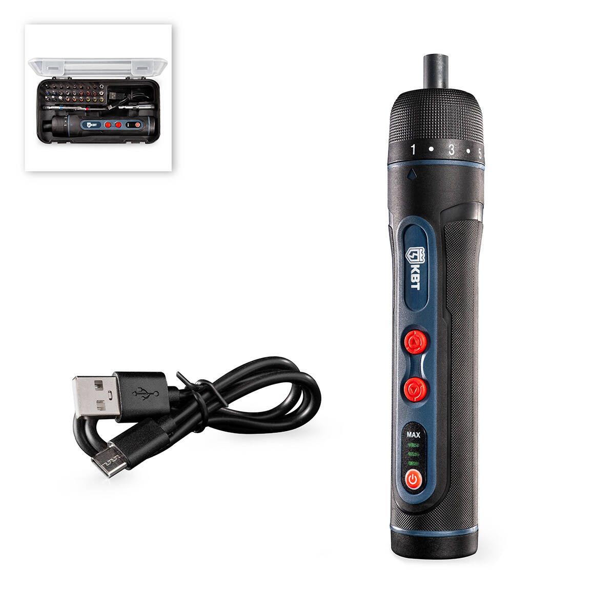 Комплектация отвертка аккумуляторная SD-4-5|адаптер для бит HEX 1/4 и HEX 4 мм|сменные биты – 27 шт – биты HEX 1/4 25 мм – PH1, PH2, SL3, SL4, SL5, H3, H4, H5, T10, T15, T20, S0, S1, S2, U6.0, Y2, ТА2.3, биты HEX 1/4 65 мм – SL5, PH2, биты HEX 4 мм 28 мм – SL1.5, SL2.0, PH000, PH00, PH0, ТS1.2, TS0.8, H2.0, бита-сверло HEX 1/4 25 мм диаметром 2 мм|USB Type-C кабель|паспорт|пластиковый кейс