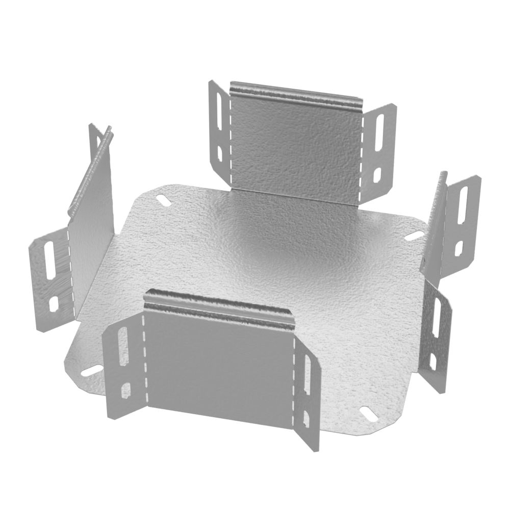 Описание Аксессуары в исполнении HDZ - это изделия с защитным покрытием горячий цинк (по ГОСТ 9.307), подходят для соединения между собой лотков серии Стандарт в любой комбинации как внутри помещений, так и на открытом воздухе. Ответвитель X-образный предназначен для разветвления кабельных трасс в горизонтальном направлении, для перфорированных и глухих лотков. В комплект не входит крышка.
