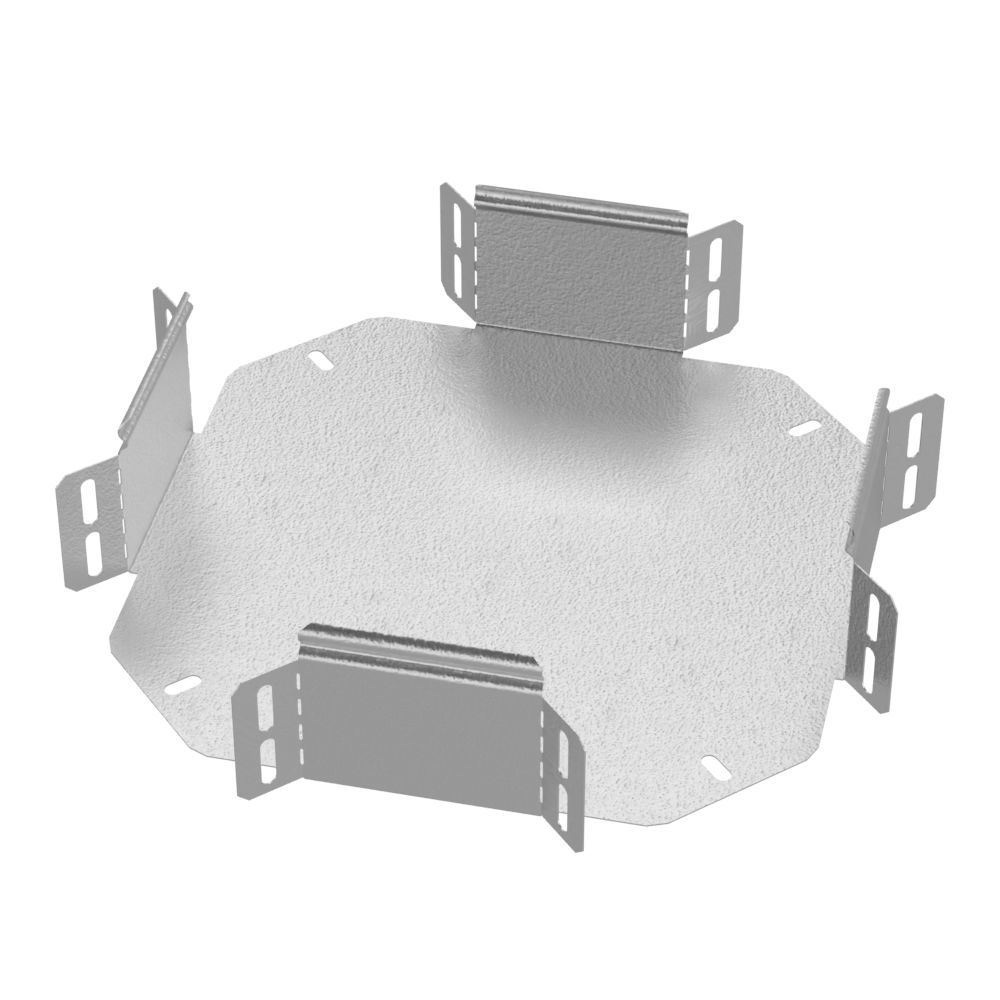 Описание Аксессуары в исполнении HDZ - это изделия с защитным покрытием горячий цинк (по ГОСТ 9.307), подходят для соединения между собой лотков серии Стандарт в любой комбинации как внутри помещений, так и на открытом воздухе. Ответвитель X-образный предназначен для разветвления кабельных трасс в горизонтальном направлении, для перфорированных и глухих лотков. В комплект не входит крышка.