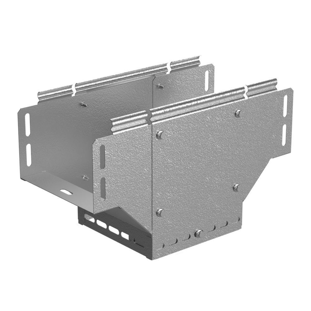 Описание Аксессуары в исполнении HDZ - это изделия с защитным покрытием горячий цинк (по ГОСТ 9.307), подходят для соединения между собой лотков серии Стандарт в любой комбинации как внутри помещений, так и на открытом воздухе. Применяется для обеспечения полноразмерного ответвления горизонтальной кабеленесущей системы из лотков металлических в вертикальном направлении. В комплект не входит крышка.