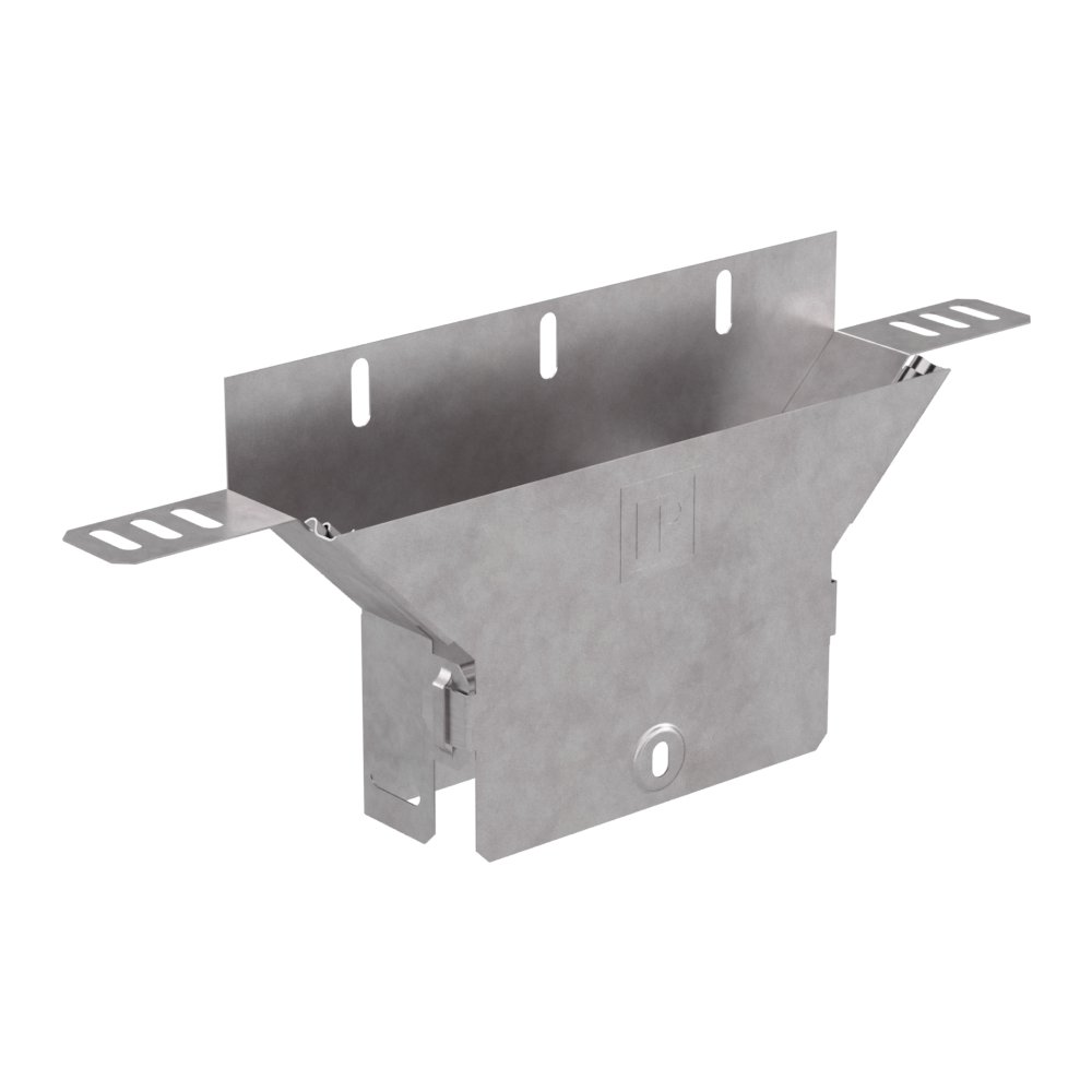 Описание Аксессуары изготовленные из стали с защитным покрытием по методу Сендзимира - это изделия, на которых защитное цинковое покрытие было нанесено на листовую сталь перед изготовлением. Толщина защитного покрытия варьируется от 10 до 22мкм. Климатическое исполнение изделий УХЛ2, что предусматривают эксплуатацию в помещении и под навесом, при температуре эксплуатации от -80 до +150С. Обеспечивает вертикальное ответвление горизонтальной кабеленесущий линии, состоящей из лотков металлических.