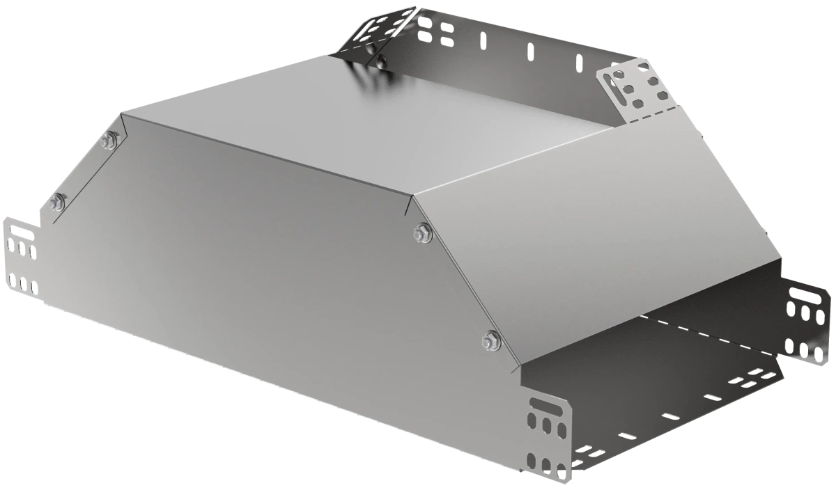 Описание Ответвитель Т-образный вертикальный вверх боковой предназначен для организации Т-образного отвода кабельной трассы вверх с изменением направления лотка на 90 градусов.Аксессуар изготовлен из стали горячего цинкования методом Сендзимира (защитный слой цинка не менее 10 мкм).