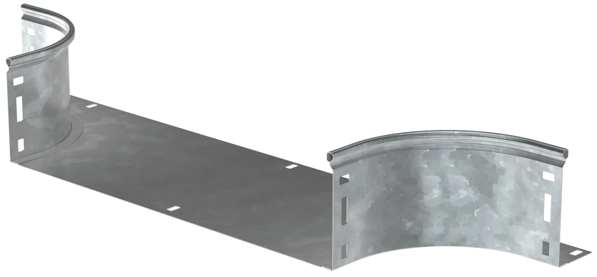 Описание Отвод Т-образный плавный предназначен для организации Т- или Х-образного горизонтального отвода кабельной трассы. Также аксессуар применяется для Т-ответвления вниз в вертикальной плоскости без применения крышки. Крышка аксессуара в комплект не входит.Аксессуар изготовлен из стали с цинковым покрытием, нанесенным погружением изделий в расплав цинка (защитный слой цинка не менее 55 мкм).
