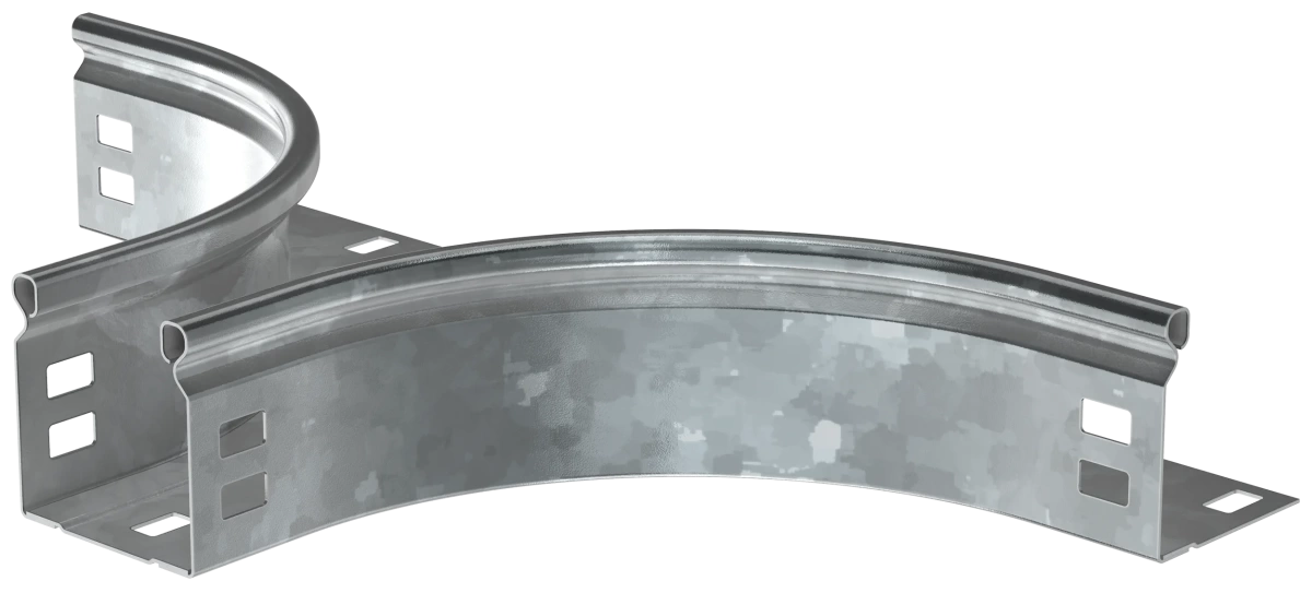 Описание Отвод Т-образный плавный предназначен для организации Т- или Х-образного горизонтального отвода кабельной трассы. Также аксессуар применяется для Т-ответвления вниз в вертикальной плоскости без применения крышки. Крышка аксессуара в комплект не входит.Аксессуар изготовлен из стали с цинковым покрытием, нанесенным погружением изделий в расплав цинка (защитный слой цинка не менее 55 мкм).
