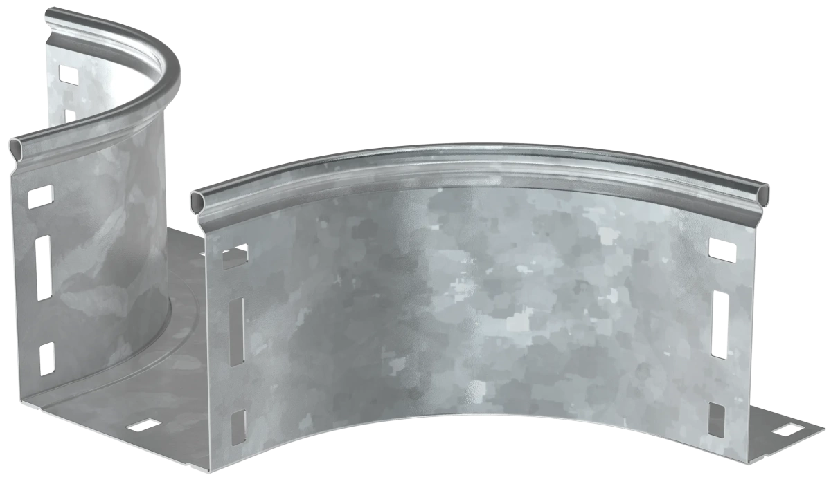 Описание Отвод Т-образный плавный предназначен для организации Т- или Х-образного горизонтального отвода кабельной трассы. Также аксессуар применяется для Т-ответвления вниз в вертикальной плоскости без применения крышки. Крышка аксессуара в комплект не входит.Аксессуар изготовлен из стали с цинковым покрытием, нанесенным погружением изделий в расплав цинка (защитный слой цинка не менее 55 мкм).