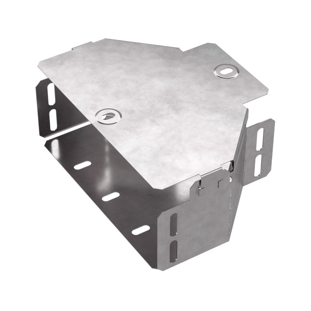 Описание Аксессуары изготовленные из стали с защитным покрытием по методу Сендзимира - это изделия, на которых защитное цинковое покрытие было нанесено на листовую сталь перед изготовлением. Толщина защитного покрытия варьируется от 10 до 22мкм. Климатическое исполнение изделий УХЛ2, что предусматривают эксплуатацию в помещении и под навесом, при температуре эксплуатации от -80 до +150С. Переходник симметричный предназначен для перехода с одной ширины лотка на другую. В комплект входит крышка.