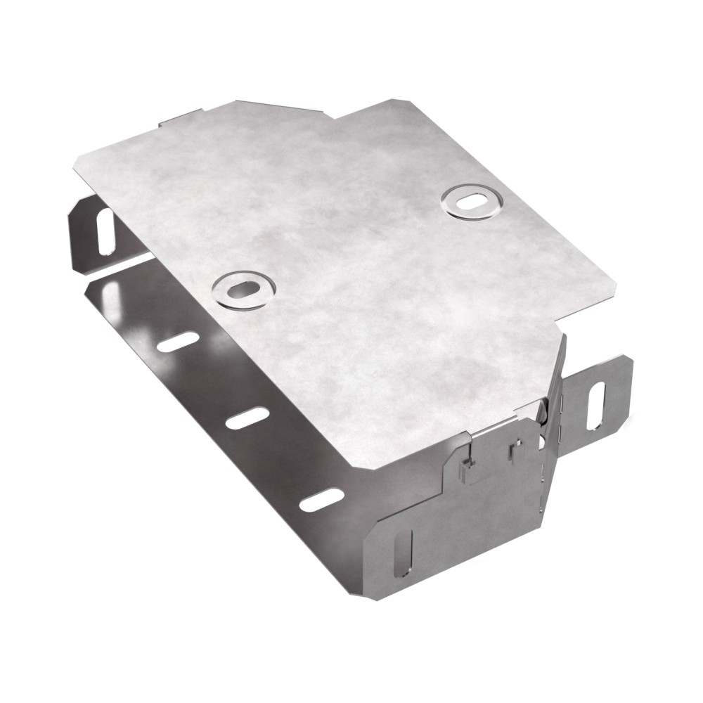 Описание Аксессуары изготовленные из стали с защитным покрытием по методу Сендзимира - это изделия, на которых защитное цинковое покрытие было нанесено на листовую сталь перед изготовлением. Толщина защитного покрытия варьируется от 10 до 22мкм. Климатическое исполнение изделий УХЛ2, что предусматривают эксплуатацию в помещении и под навесом, при температуре эксплуатации от -80 до +150С. Переходник симметричный предназначен для перехода с одной ширины лотка на другую. В комплект входит крышка.