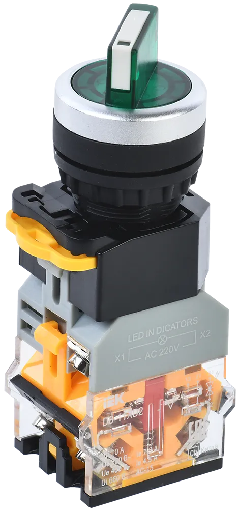 Полные технические характеристики Переключатель D8-11XD2 2 полож. 1з+1р с подсвет. зеленый IEK (ИЭК) BSW30-11XD2-3-14-2-K06