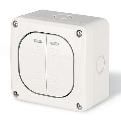 Переключатель однополюсный двухклавишный настенный DKC (ДКС) DIS1375222