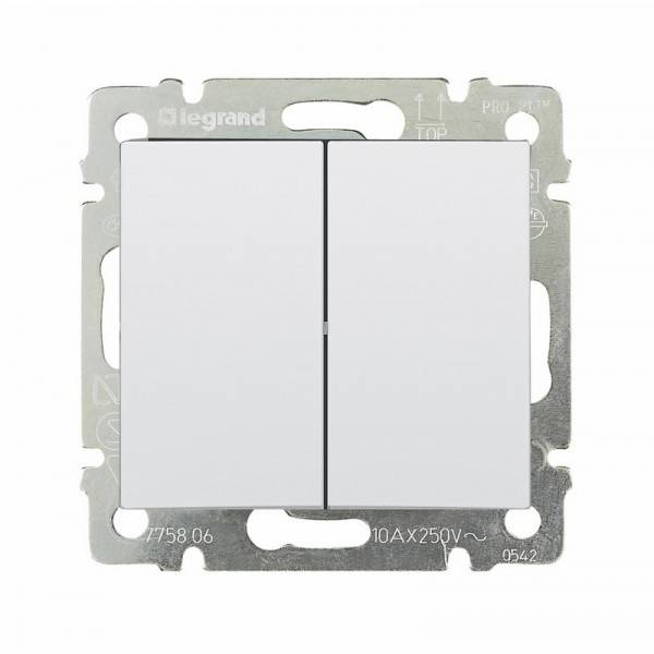 Наименование в каталоге VALENA Переключатель двухклавишный в рамку на 2 направления белый