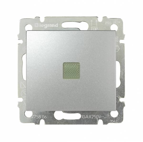 VALENA Выключ. 1-кл. прох. с подсв. 6L 10А алюм.