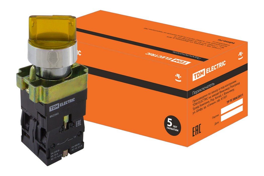 Полные технические характеристики Переключатель BK 2565 2 положения желтый 1з+1р TDM ELECTRIC SQ0703-0016