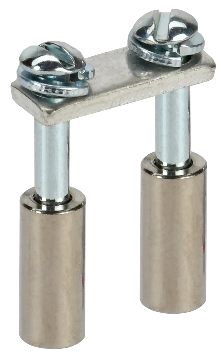 Описание Винтовая перемычка состоит из токоведущей шины, втулок и винтов и представляет из себя готовое изделие для применения. Перемычка подключается при помощи встроенного винта к клемме через отверстие в середине клеммы. Они доступны в стандартной комплектации с 2, 3, 4 или 10 полюсами.