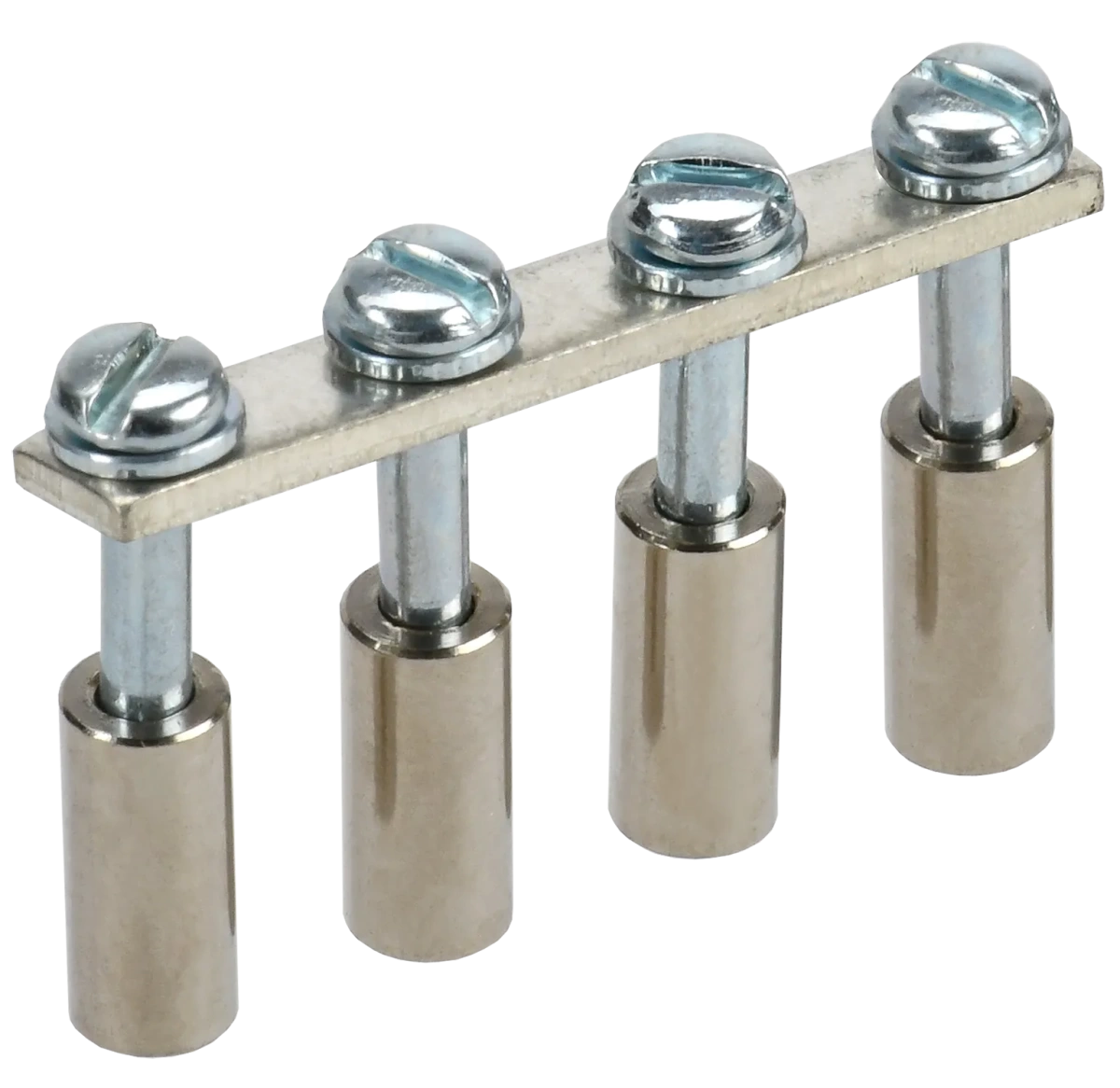 Описание Винтовая перемычка состоит из токоведущей шины, втулок и винтов и представляет из себя готовое изделие для применения. Перемычка подключается при помощи встроенного винта к клемме через отверстие в середине клеммы. Они доступны в стандартной комплектации с 2, 3, 4 или 10 полюсами.