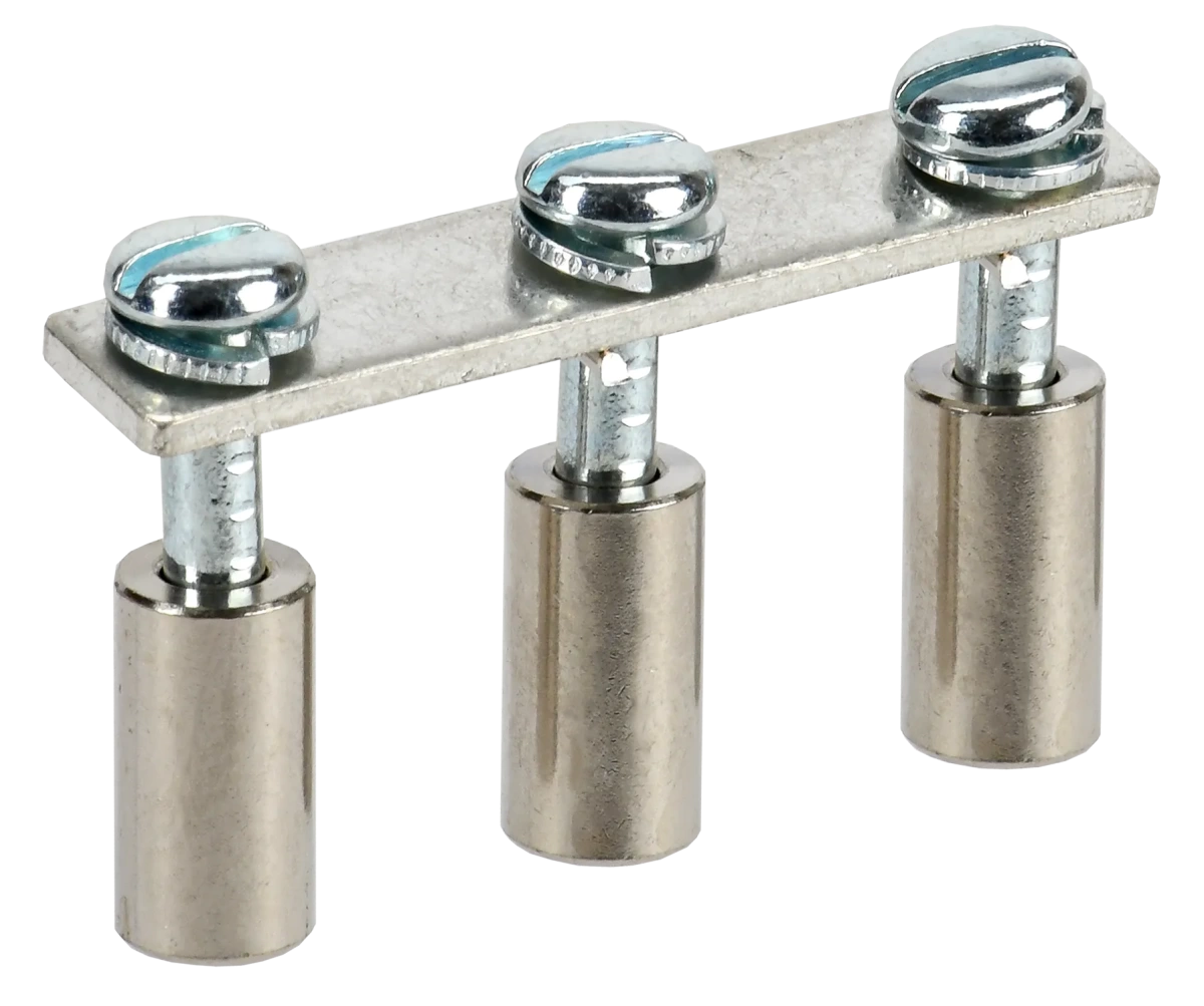 Описание Винтовая перемычка состоит из токоведущей шины, втулок и винтов и представляет из себя готовое изделие для применения. Перемычка подключается при помощи встроенного винта к клемме через отверстие в середине клеммы. Они доступны в стандартной комплектации с 2, 3, 4 или 10 полюсами.