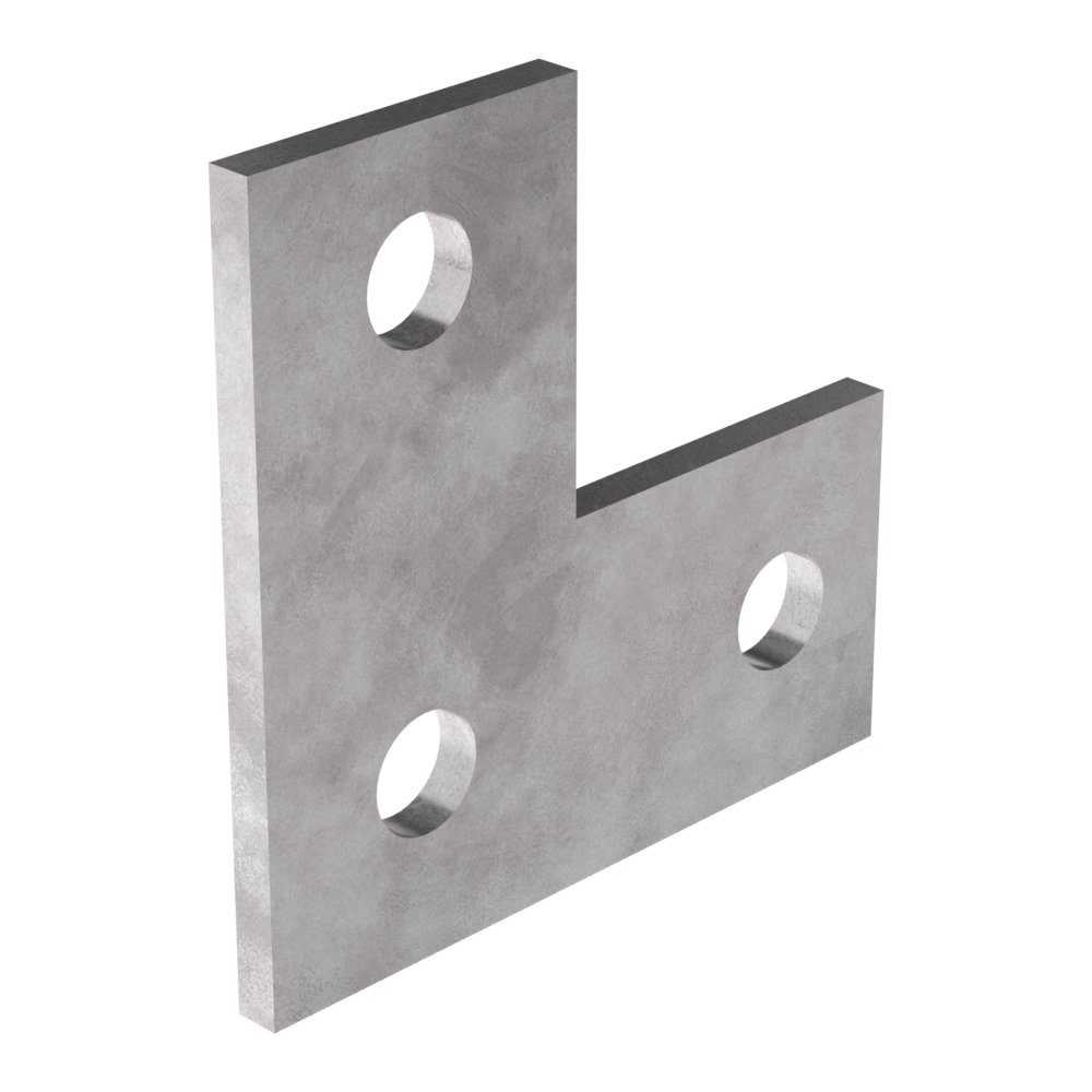 Описание Пластина L-образная, с тремя круглыми отверстиями, диаметром 13 мм,  размерами 86х135 мм и толщиной 5 мм, вес 0,33 кг.   Защищена от коррозии цинковым покрытием, нанесенным методом горячего цинкования. Используется для соединения между собой различных элементов монтажных профилей без использования сварки, с помошью специальных монтажных крепежей.