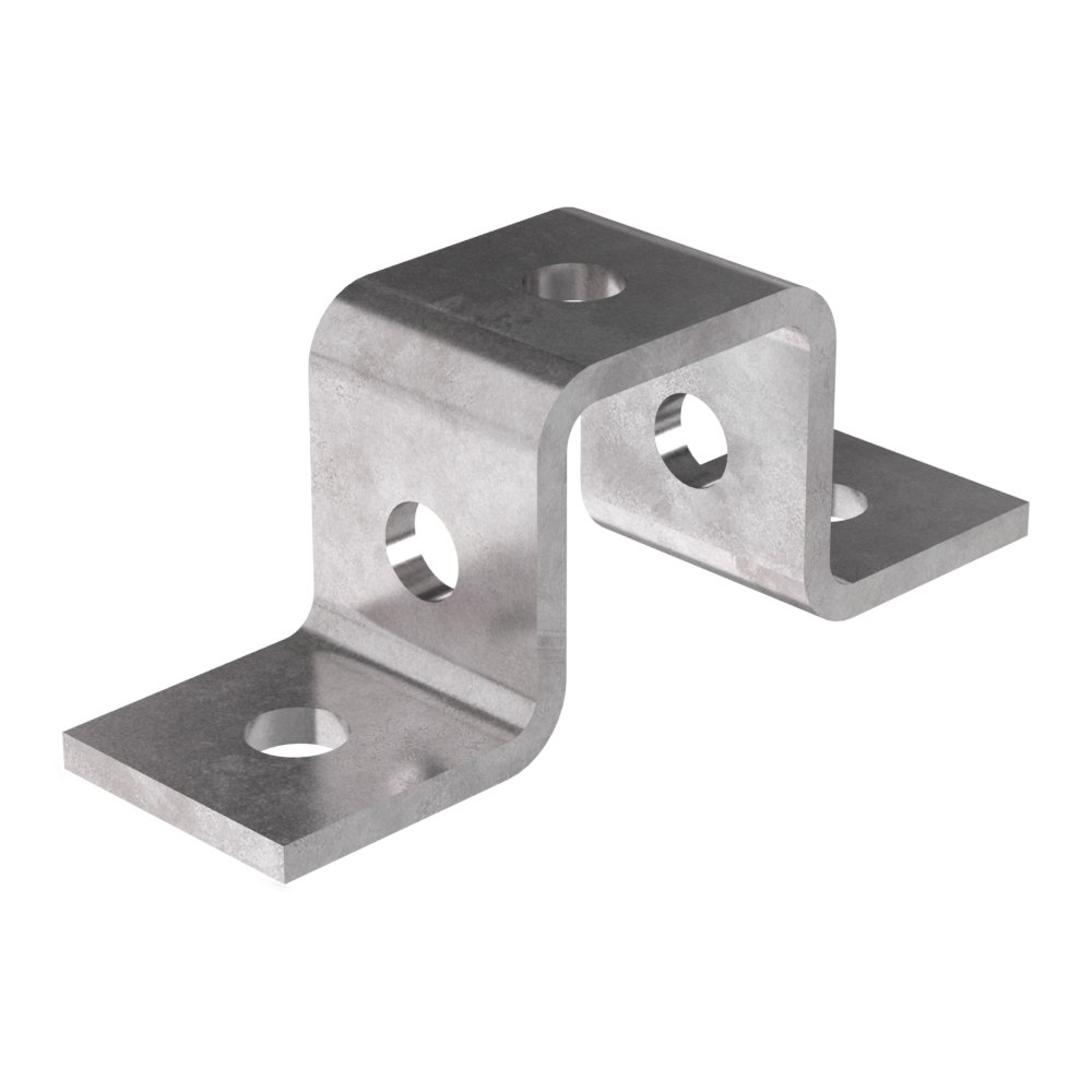Описание Пластина П-образная, с пятью круглыми отверстиями, диаметром 13 мм,  размерами 40х50х135 мм и толщиной 5 мм, вес 0,30 кг. Используется для соединения между собой двух STRUT-профилей без использования сварки, с помошью специальных монтажных крепежей. Защищена от коррозии цинковым покрытием, нанесенным методом горячего цинкования.