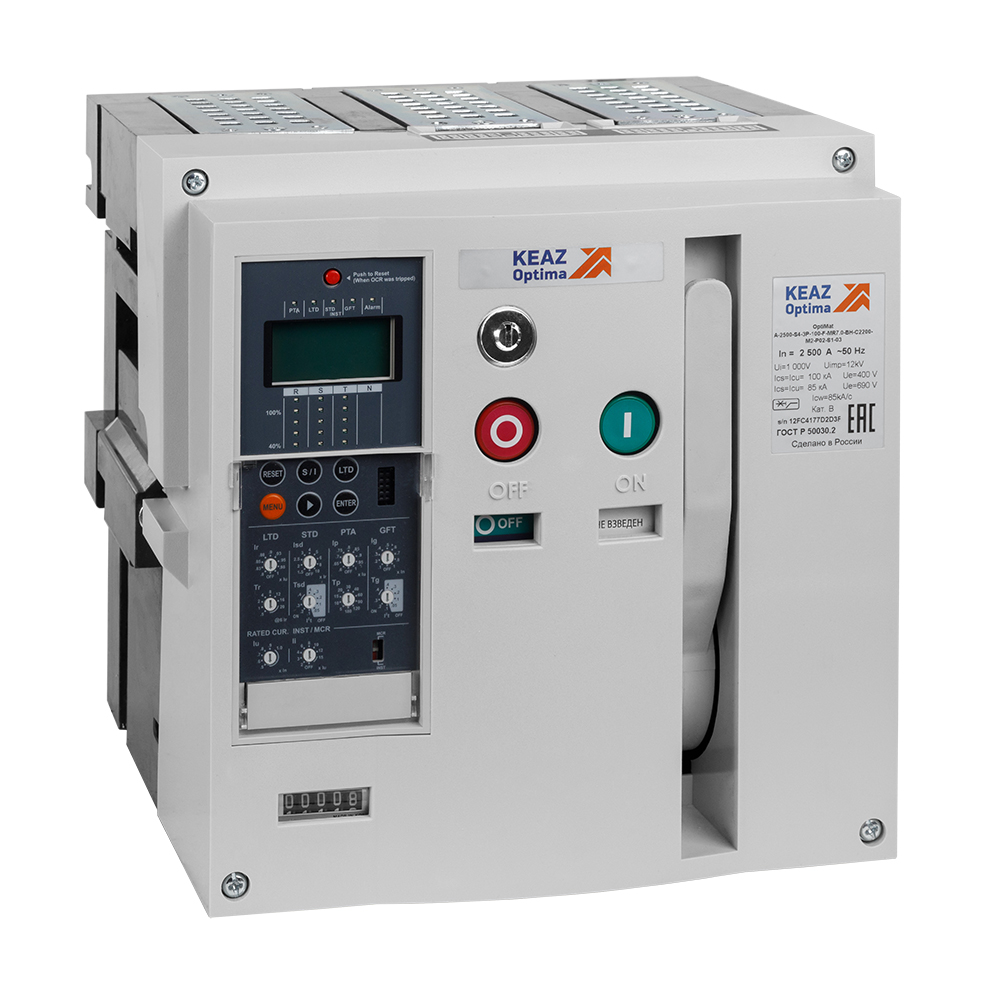 Описание Воздушные автоматические выключатели OptiMat А производства КЭАЗ используются в качестве вводных и секционных аппаратов для первичного распределения электроэнергии в низковольтных установках. Они предназначены для защиты и нечастого включения электрического оборудования до 6300 A. Благодаря своей конструкции легко справляются с большими мощностями.