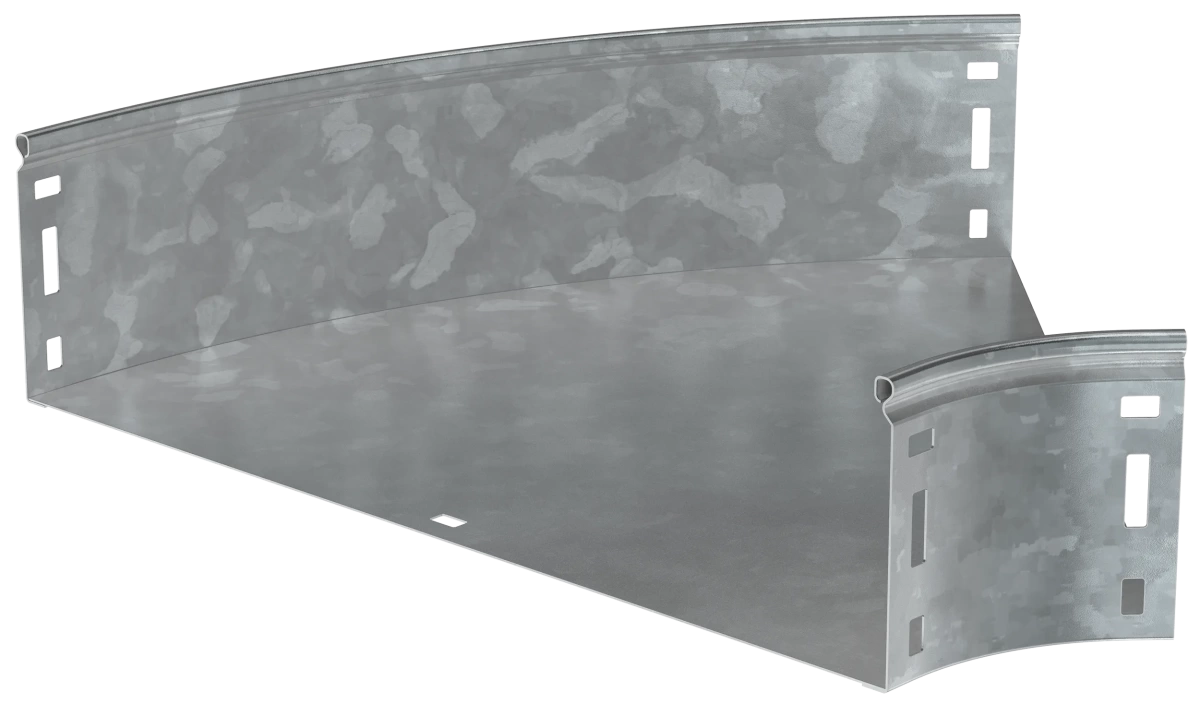 Описание Поворот на 45 градусов плавный предназначен для организации горизонтального поворота кабельной трассы на 45 градусов. Крышка аксессуара в комплект не входит.Аксессуар изготовлен из стали с цинковым покрытием, нанесенным погружением изделий в расплав цинка (защитный слой цинка не менее 55 мкм).