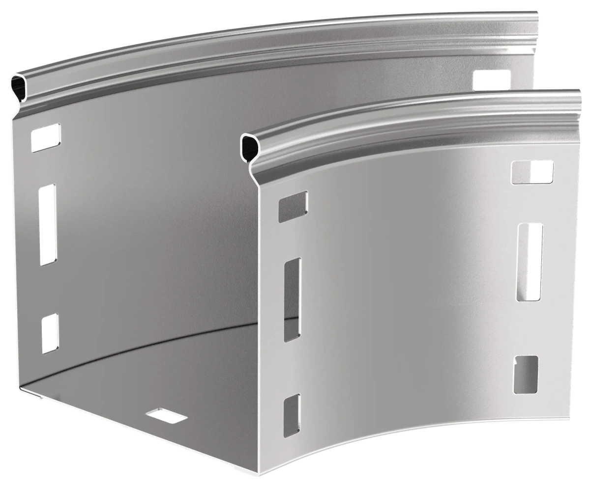 Описание Поворот на 45 градусов плавный предназначен для организации горизонтального поворота кабельной трассы на 45 градусов. Крышка аксессуара в комплект не входит.Аксессуар изготовлен из стали горячего цинкования методом Сендзимира (защитный слой цинка не менее 10 мкм).