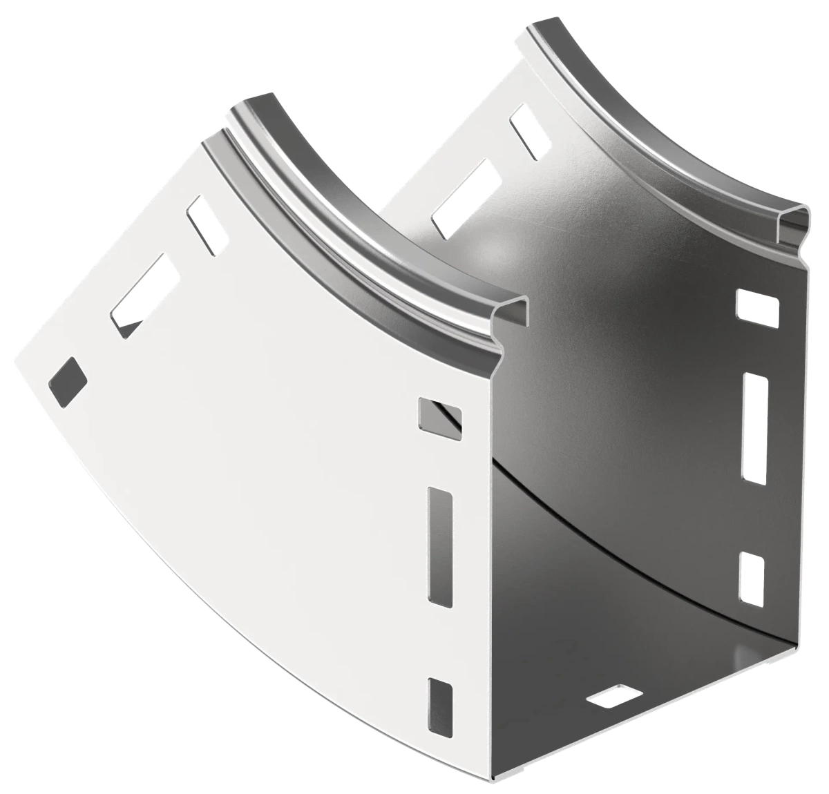 Описание Поворот на 45 градусов вертикальный внутренний плавный предназначен для организации вертикального внутреннего поворота кабельной трассы на 45 градусов. Крышка аксессуара в комплект не входит.Аксессуар изготовлен из стали горячего цинкования методом Сендзимира (защитный слой цинка не менее 10 мкм).